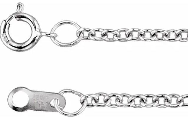 Rhodium-Plated Sterling Silver 1.5 mm Solid Cable 18" ChainSpecificationsWeight: 1.37 DWT (2.13 grams)Clasp Type: Spring RingMaterial: Sterling SilverSolid/Hollow: SolidApprox. Length: 18 InApprox. Width: 1. quantity